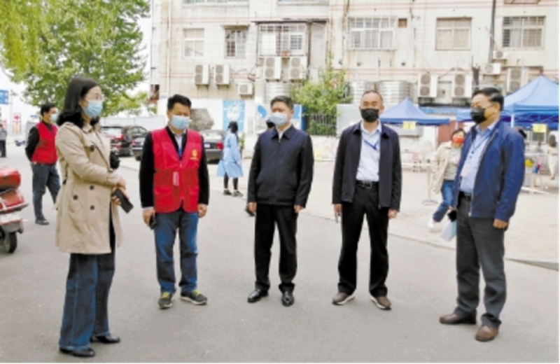 2022年4月,中心班子成员到滨湖社区检查疫情防控工作。