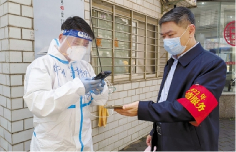 2022年4月23日,中心主任胡玉林检查中心人员参与滨湖社区疫情防控工作。