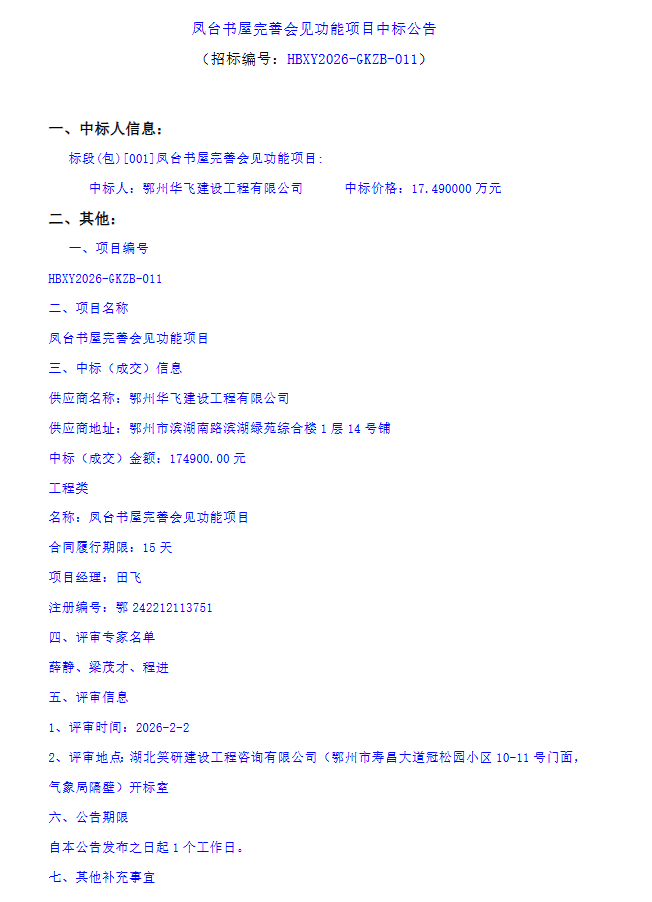 凤台书屋完善会见功能项目中标公告