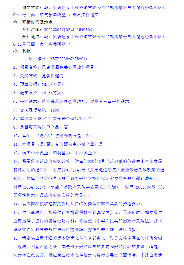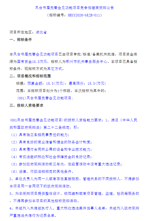 凤台书屋完善会见功能项目竞争性磋商采购公告